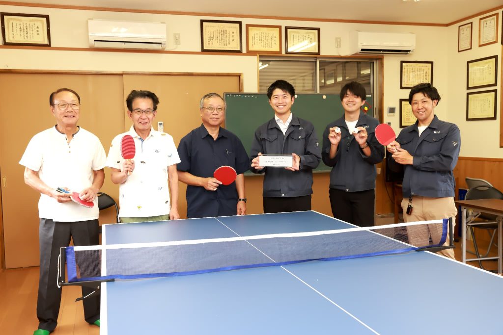 地域のみなさまが集まるきっかけの一つとして利用していただけるよう卓球台を寄付させていただきました。