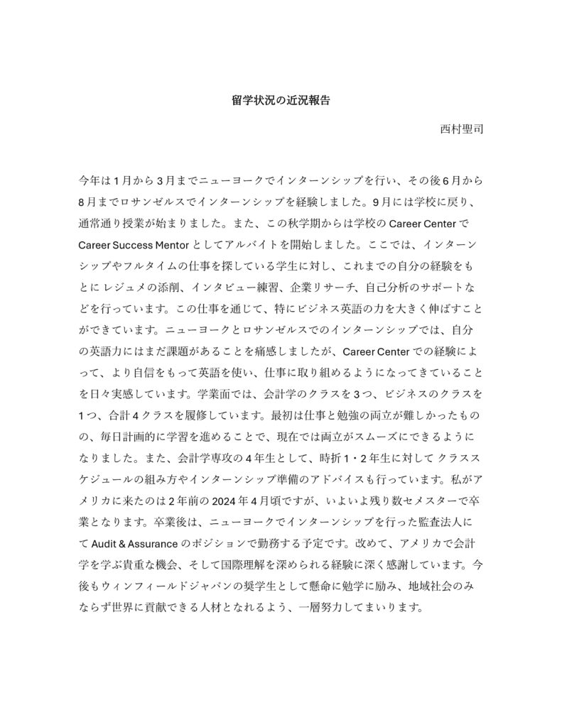 現地での生活や日本との文化の違い、留学に対する想いなど綴っていただいております。